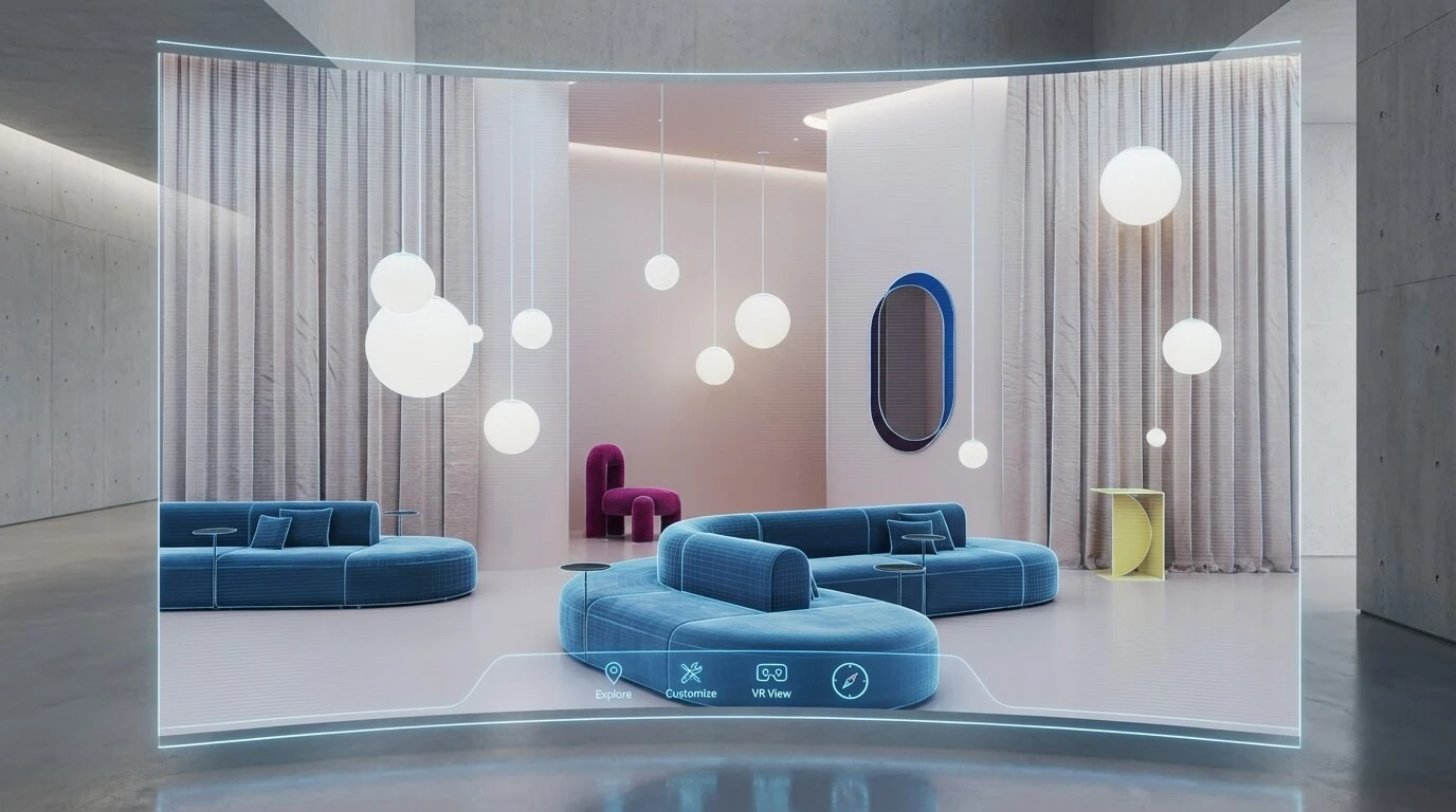 Un showroom virtuel est un univers de marque entièrement numérique qui fonctionne dans un navigateur, sous forme d'expérience VR ou dans une application de réalité augmentée (AR). Les clients se déplacent librement dans des espaces photoréalistes, choisissent des variantes grâce à un configurateur et achètent directement. L'entreprise associe ainsi l'émotion d'un magasin phare à l'évolutivité d'une boutique en ligne.